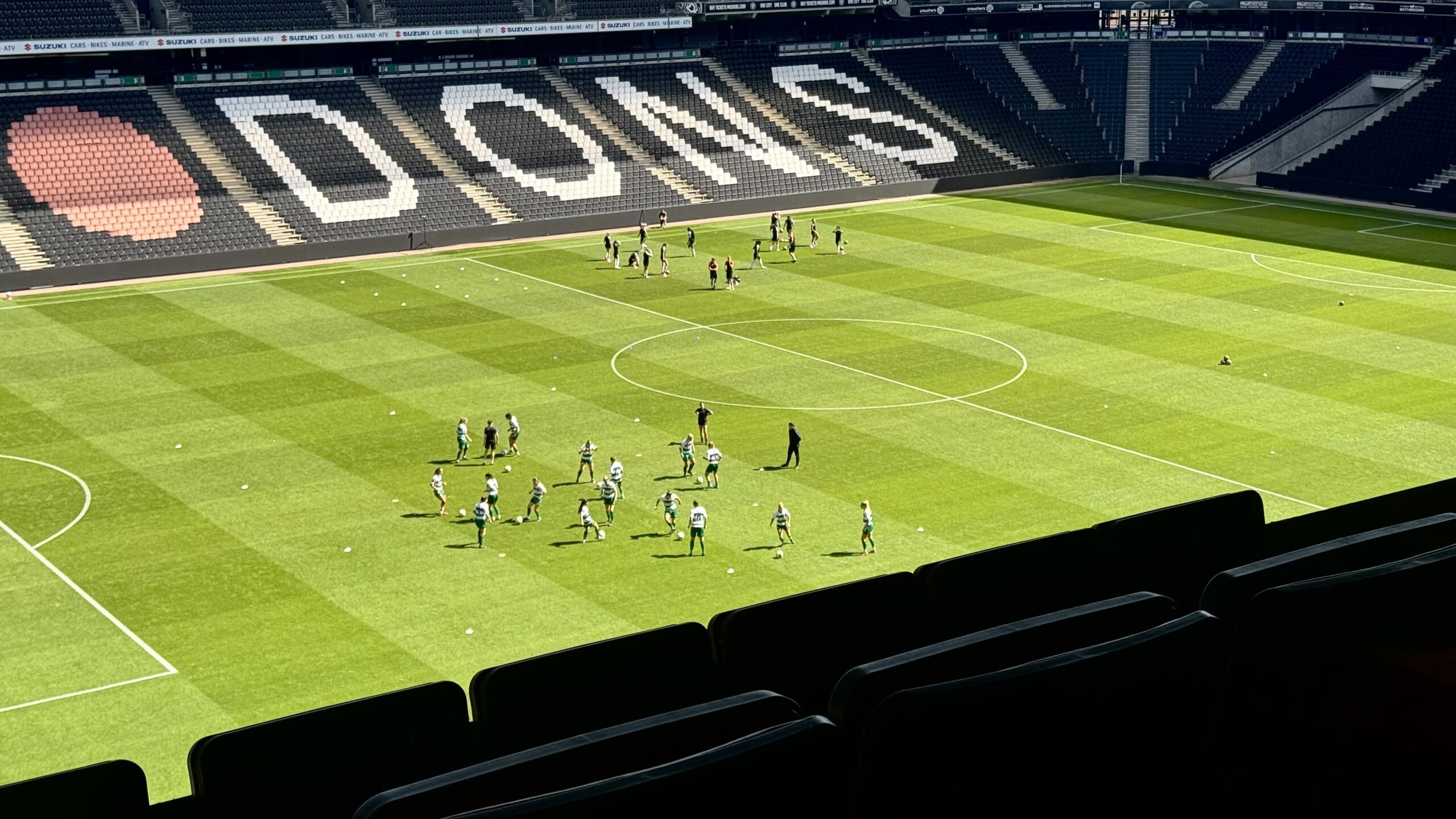 We went to the hotel to see our home for the next six days, but nothing could have prepared me for where we stayed. I’ve always found it funny how Kanye West lived in the Mercedes Benz Stadium in 2021 while making the album, “Donda.” Well, the joke was on me because I was about to do the same. Clearly, I didn’t read the TripAdvisor details closely enough because our hotel room was in the stadium. Literally—we were going to live in a stadium. At the hotel, my Hilton Honors Super-Duper Platinum status scored us a free upgrade to the most premium room that they had available, which is one that overlooked the field where the MK Dons played football (soccer). At first it was odd, but then it became the coolest experience to look at the stadium throughout the day to see what was going on. It was basically like watching ultra-high-definition reality TV.
